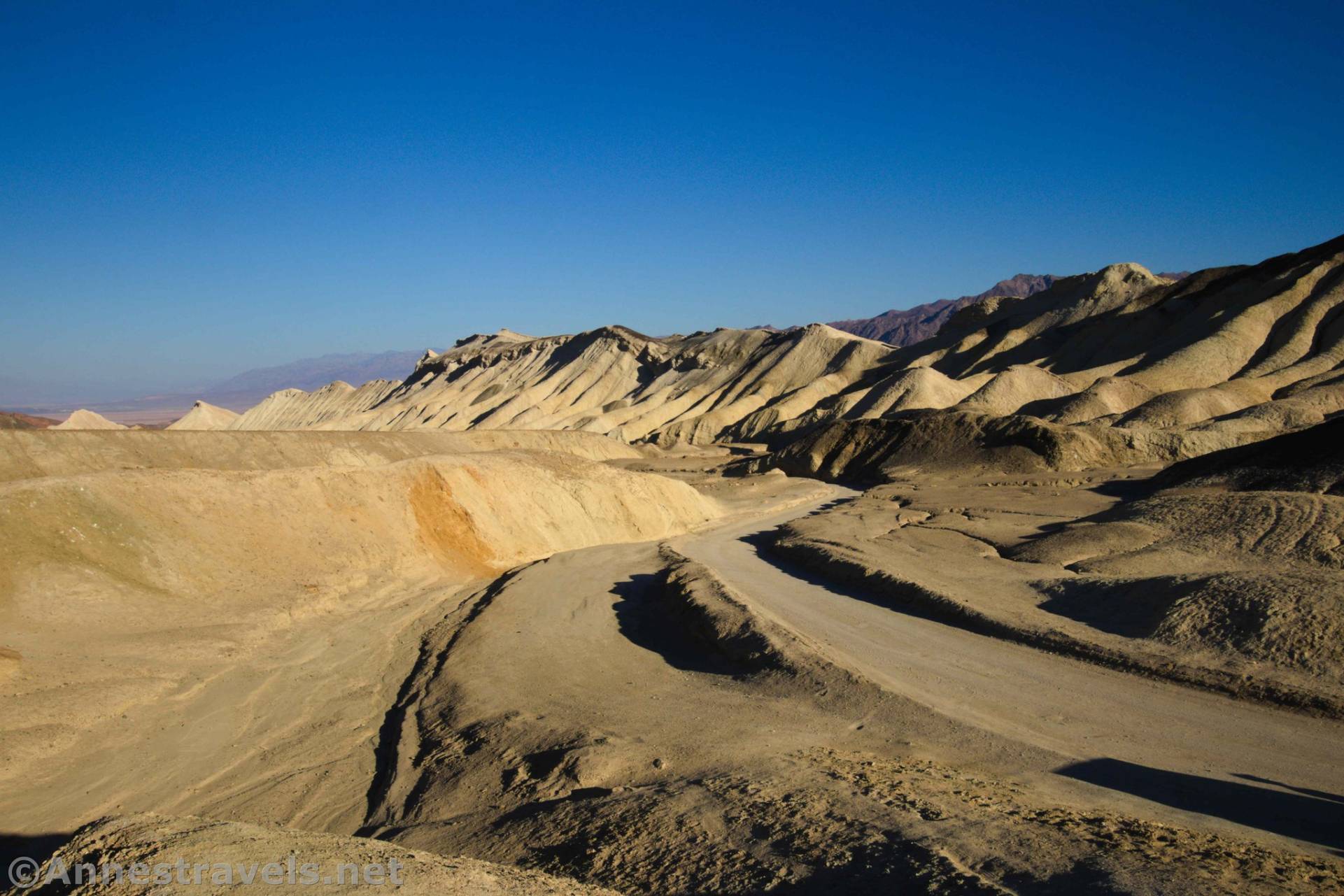 Take CA-190 east of Furnace Creek to the 20 Mule Team Scenic Drive, 24.2 miles west of Death Valley Junction and 1.1 miles east of Zabriskie Point.